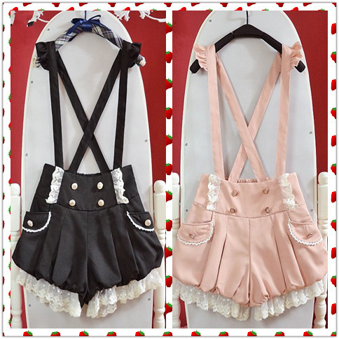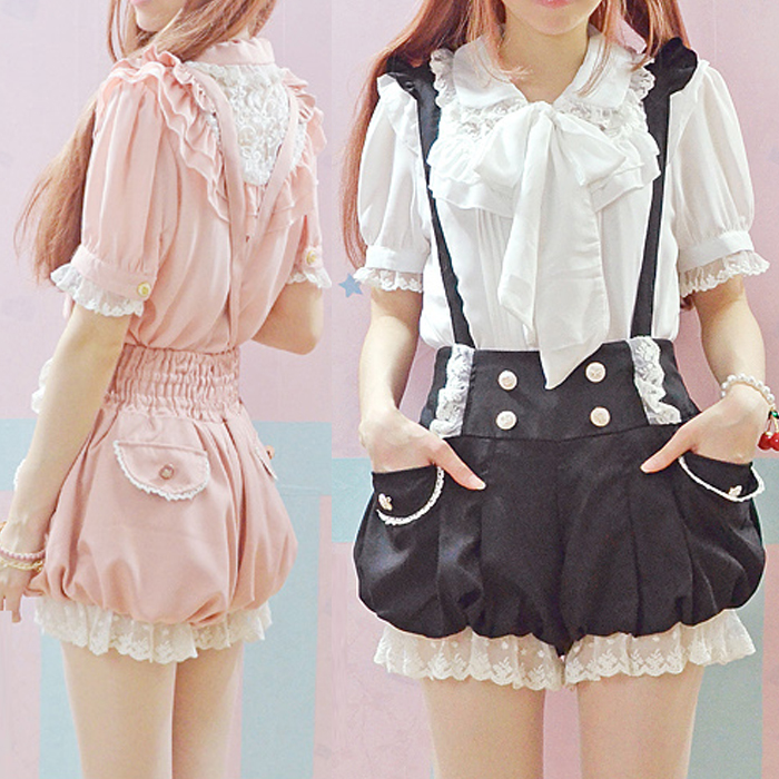 Japanese Kawaii Bow Chiffon Blouse / Straps Shorts